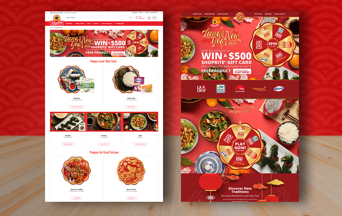 Lunar New Year 2020 gamification promotional campaign with ShopRite Wakefern. All web design, development and gamification support & management with third party developer.